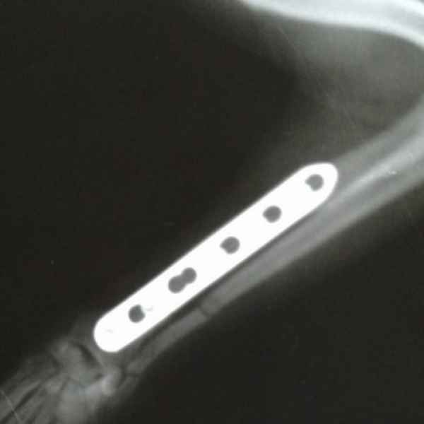 Этот пациент поступил к нам с кусаной раной левой грудной конечности После рентгенологического исследования обнаружили перелом костей предплечья. Сложность операции заключалось в том, что дистальный отросток лучевой кости был очень коротким. Хирургом нашей клиники было принято решение установить блокируемую lcp пластину. В данный момент пациент полностью восстановился..